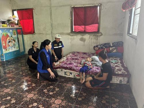 นางสาวชลธิชา วงษ์อุตสาห์ นายอำเภอท่าม่วง ในฐานะประธานคณะกรรมการบริหารศูนย์อำนวยการขจัดความยากจนและพัฒนาคนทุกช่วงวัยอย่างยั่งยืนตามหลักปรัชญาของเศรษฐกิจพอเพียง (คจพ.อ.ท่าม่วง) พร้อมคณะ และทีมปฏิบัติการตำบลรางสาลี่ ลงพื้นที่เยี่ยมเยียนให้กำลังใจครัวเรือนที่ตกเกณฑ์ จปฐ., ครัวเรือนเปราะบาง และครัวเรือนเป้าหมายจากระบบ TPMAP ปี 2568 โดยมอบเครื่องอุปโภคบริโภค และผ้าห่มกันหนาวที่ได้รับการสนับสนุนจากสำนักงานเหล่ากาชาดจังหวัดกาญจนบุรี รวม 5 ครัวเรือน