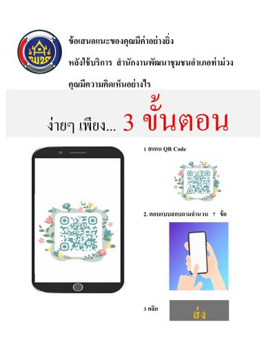 สำนักงานพัฒนาชุมชนอำเภอท่าม่วงเชิญชวน ทำแบบประเมินความพึงพอใจ ความต้องการและความคาดหวังของผู้รับบริการต่อการให้บริการของสำนักงานฯ ข้อมูลที่ได้จะเป็นประโยชน์อย่างยิ่งต่อการพัฒนาและปรับปรุงการให้บริการให้มีความเหมาะสมต่อไป